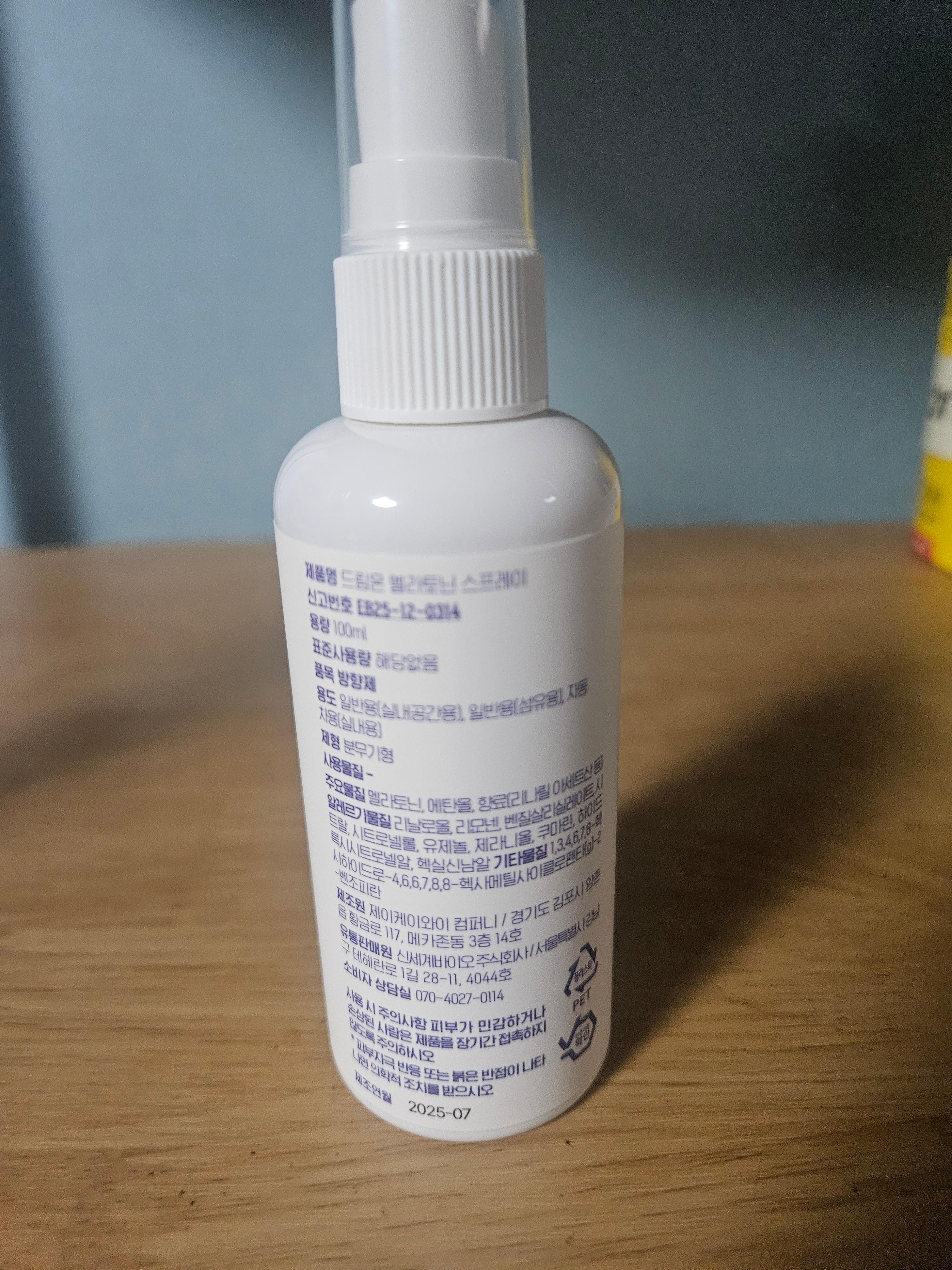 얼굴에 직접 뿌리는 게 아니라 방안에 가볍게 2~3회 분사해서 향이 퍼지도록 하는 게 좋음.