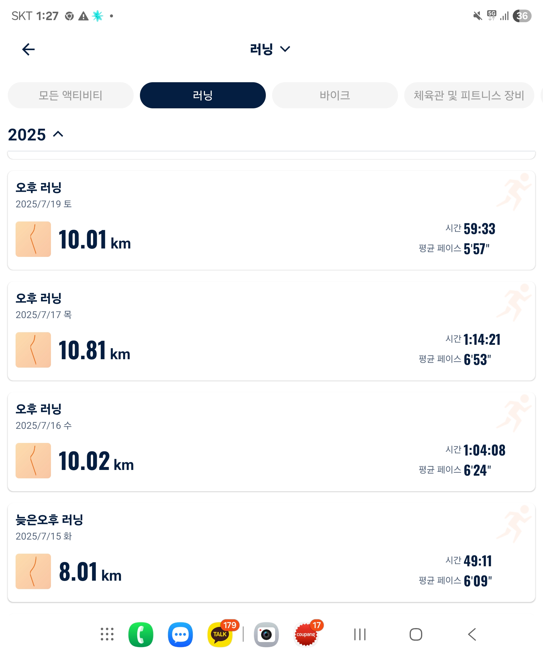 러닝 - 99KM 헬스-주 4회 정도.